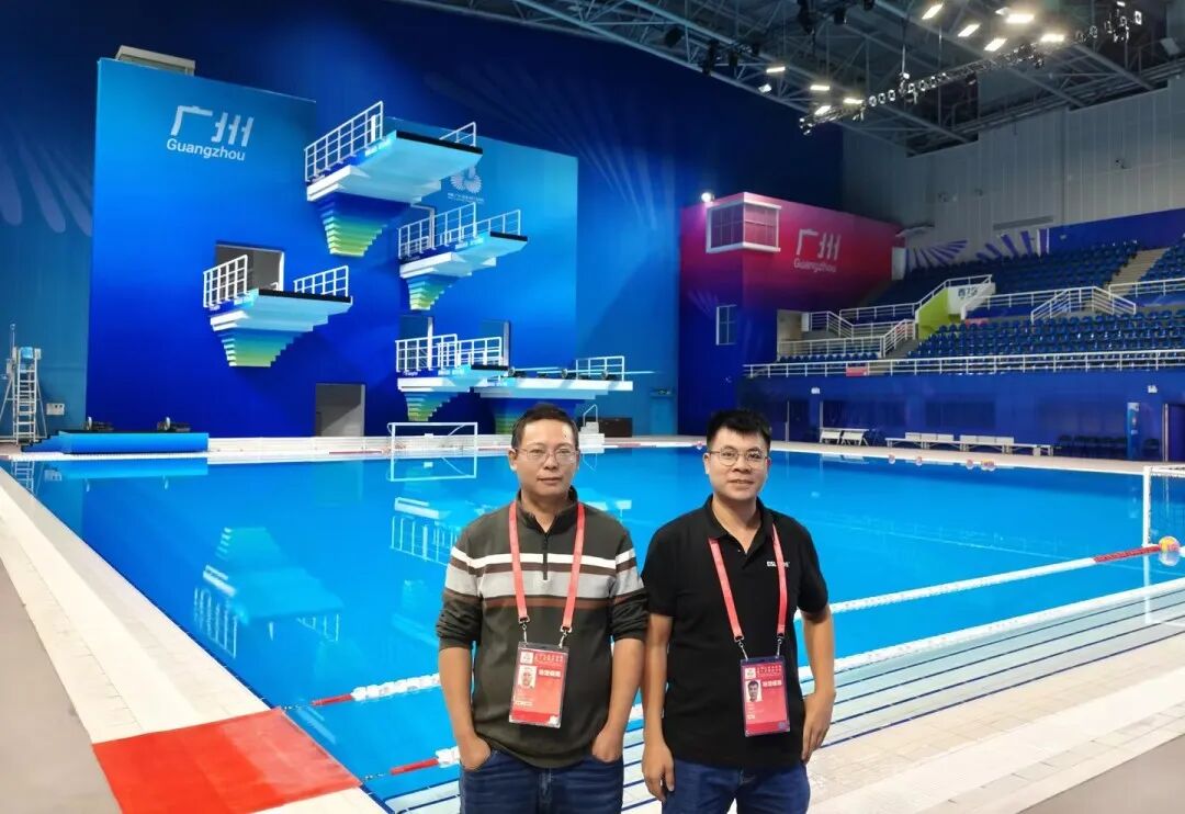 赛事期间,戴思乐集团组建专项保障团队——2名驻场人员 + 1名机动人员全程驻扎广东奥体中心游泳跳水馆,开启全天候24小时值守模式。
