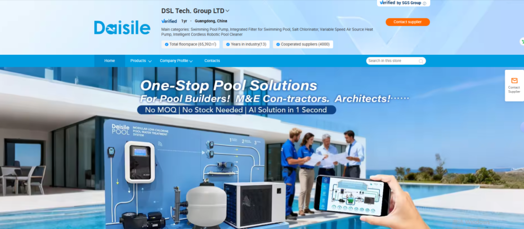 2025年,戴思乐入驻阿里巴巴国际站,以跨境电商模式拓局全球市场。平台上线的产品系统解决方案,囊括低氯泳池系统、智能泳池系统、智能水质在线监测设备及智能无线泳池清洁机器人等,全面打造出海“拳头产品矩阵”。此举标志着戴思乐在品牌全球化布局与数字化营销转型的进程中,迈出了关键一步。